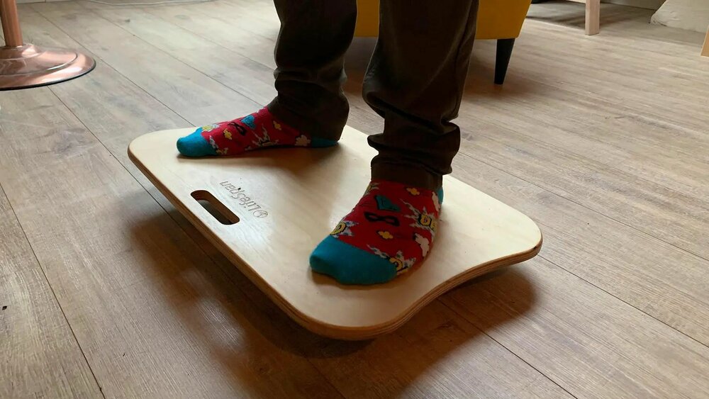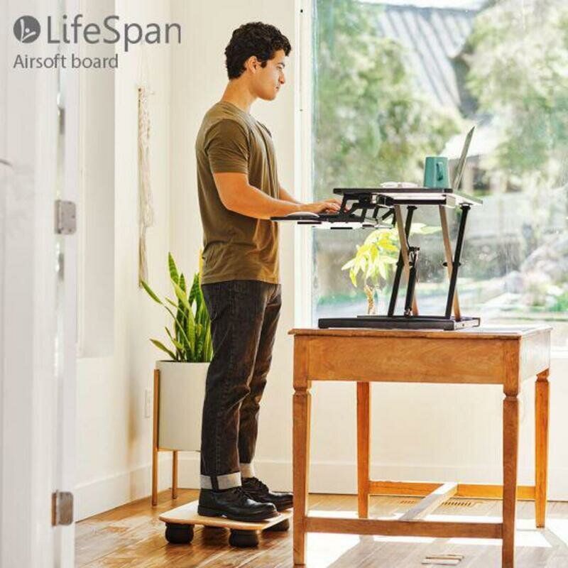 Mit dem Lifespan Airsoft Balance Board können Sie aktiv im Stehen an Ihrem Steh-Sitz-Schreibtisch arbeiten. So bringen Sie Bewegung in Ihren Arbeitsalltag. Das Balance Board ist klein und leicht, so dass es kaum Platz wegnimmt und man es leicht mitnehmen kann. Auf diesem Balance Board setzt man den ganzen Körper ein, um im Gleichgewicht zu bleiben. Sie trainieren Ihre Rücken-, Bauch-, Rumpf-, Bein- und Fußmuskeln.