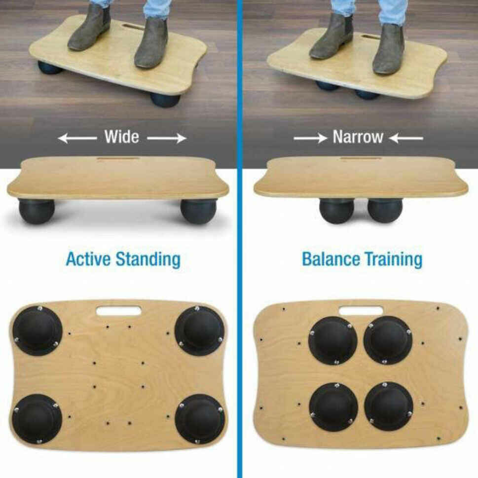 Mit dem Airsoft Balance Board können Sie die Intensität der Schwünge in zwei Schwierigkeitsgraden einstellen, indem Sie die luftgefüllten Kugeln am Boden austauschen. Langes Arbeiten im Stehen kann irgendwann ermüdend werden, so dass Sie sich auf Ihren Schreibtisch stützen, um Ihre Beine und Ihren Rücken zu entlasten. Dieses Balance Board sorgt dafür, dass das Arbeiten im Stehen aktiver und einfacher wird und Sie länger durchhalten können. Legen Sie die Bälle in die vier Ecken, um im Stehen eine angenehme Dämpfung und leichtes Schwingen zu erleben. Brauchen Sie eine größere Herausforderung? Legen Sie dann die Bälle in die Mitte des Boards, um einen stärkeren Schwung zu erleben. Das Balance Board wird mit einer Luftpumpe geliefert, um die Gummibälle aufzublasen.