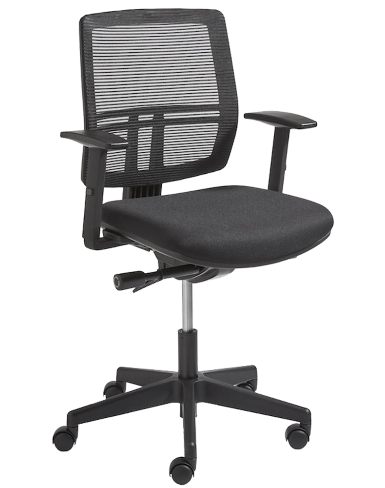 Bürostuhl Kepler ist ein einfacher Bürostuhl, der für glatte Böden geeignet ist. Farbe: schwarz.