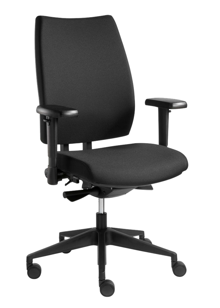 Bürostuhl Pandora: Ein moderner Bürostuhl mit Stoffbezug. Nach den neuesten niederländischen Ergonomie Richtlinien (NPR-1813). Farbe: Schwarz.