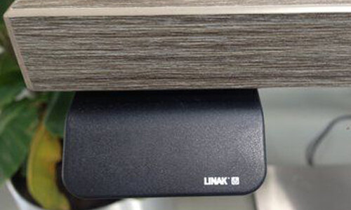 Speziell für diesen Linak Steh-Sitz-Schreibtisch können Sie sich für einen abnehmbaren Akku entscheiden. So können Sie die Höhe des Tisches ohne Kabel verstellen. Das beseitigt das Kabelchaos und macht es einfach, den Tisch an einem Ort ohne Steckdose aufzustellen.