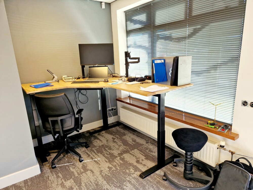 Die Abmessungen der Platte sind auch sehr gut (200x160x80). Es gibt eine geräumige Ecke, in der genug Platz für ein Setup mit Laptop und zweitem Bildschirm ist, die Innenecke ist abgerundet, so dass die Ecke auch bequem genutzt werden kann. an der kurzen Seite ist genug Platz für Kaffee, Mauspad, Notizblock und dergleichen. Die lange Seite ist auch sehr schön, vor allem für großformatige Zeichnungen. A0 passt gerade noch so, aber ausreichend, A1 passt gerade noch auf den Schreibtisch, nützlich zum Anfertigen von Zeichnungen oder zum Überprüfen derselben.
