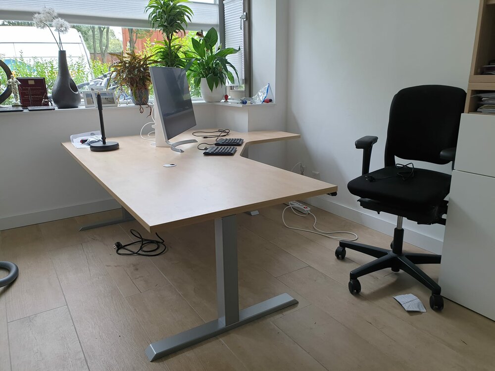 Sehr schöner Schreibtisch, geliefert von einer netten Firma. Habe mich zunächst für eine Katzenaufstellung entschieden, aber leider passte das Blatt nicht durch das Treppenhaus (Tipp zum richtigen Ausmessen). Zum Glück waren die Mechaniker sehr flexibel und haben gut mitgedacht. Schließlich entschied man sich für ein Flügelblatt mit einem zusätzlichen Stück.