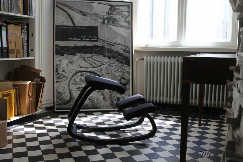 Eine komfortable Art am einem Schreibtisch zu sitzen. Außerdem sitzt man mit dem Rücken automatisch gerade.