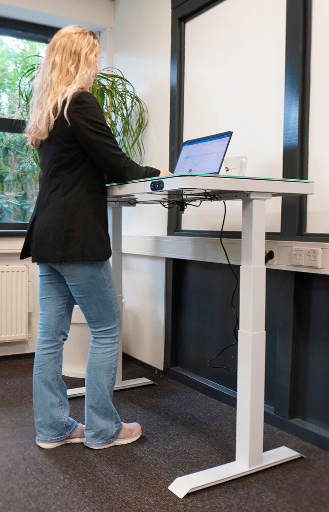 LifeSpan | Höhenverstellbarer Schreibtisch mit Glasplatte