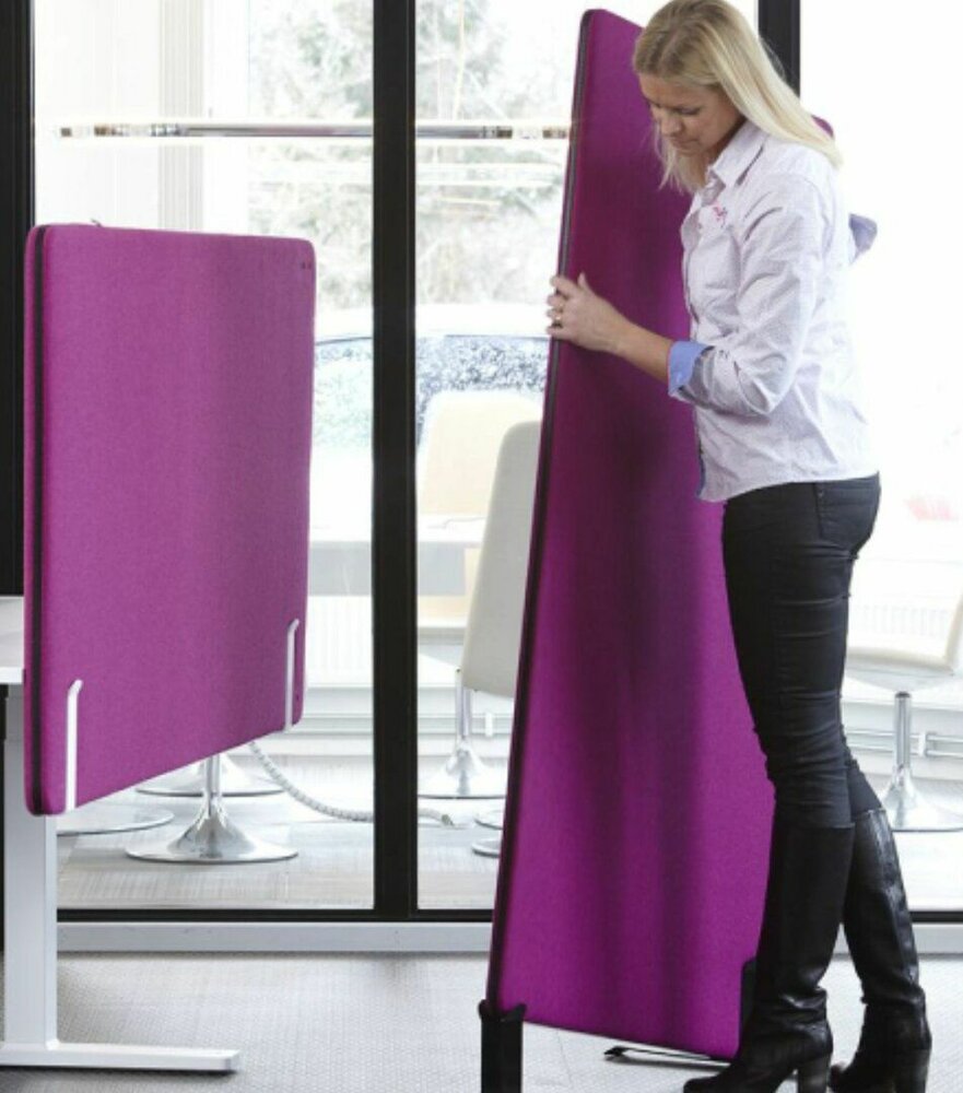 Freistehender Akustikschirm für den Einsatz zwischen Arbeitsplätzen oder als Raumteiler. Sie haben die Auswahl aus vielen verschiedenen Grundfarben.