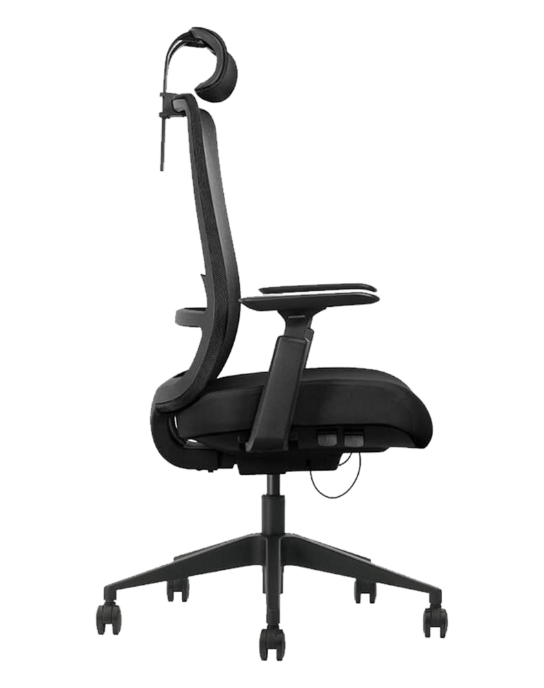 Auch in puncto Komfort und Langlebigkeit überzeugt der Vane. Die geformte Schaumpolsterung sorgt für angenehmen, stabilen Halt, während der Emma-Bezugsstoff nicht nur abriebfest (100.000 Martindale), sondern auch flammhemmend ist. Die netzbespannte Rückenlehne bietet optimale Belüftung, sodass der Stuhl selbst an warmen Tagen angenehm bleibt. Der Vane ist in Schwarz oder Grau direkt ab Lager lieferbar – auf Wunsch auch mit verstellbarer Kopfstütze für zusätzlichen Luxus.Kurz gesagt: ein stilvoller und ergonomischer Bürostuhl – die perfekte Wahl für jeden Arbeitsplatz.
